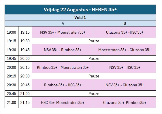 Vrijdag 22 augustus is het heren 35+ toernooi.