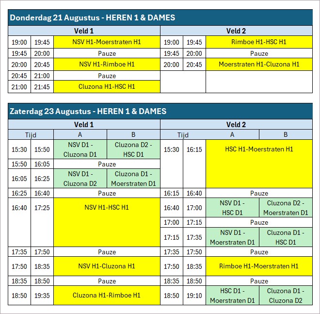Zaterdag 23 augustus spelen de eerste elftallen heren de tweede ronde, en tegelijkertijd spelen ook de dames zeventallen hun toernooi.